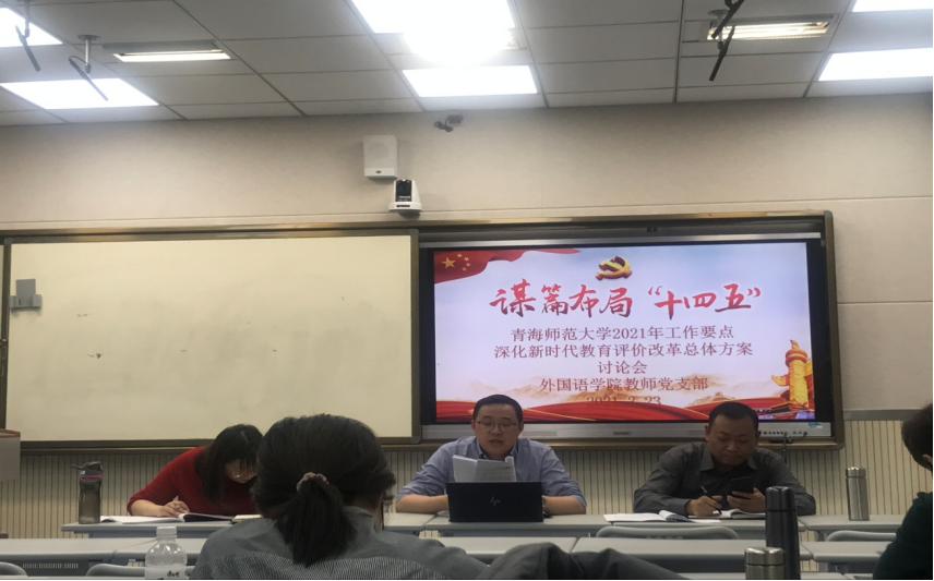 为深入学习贯彻落实党中央、国务院印发的《深化新时代教育评价改革总体方案》,深刻认识教育评价改革的重要性、紧迫性和战略性意义,全面领会文件思想精髓,明确改革核心要�,3�23日至3�24日,外国语学院教师党支部组织全体党员、全体教职工开展了党史学习教育第一次研讨活动�