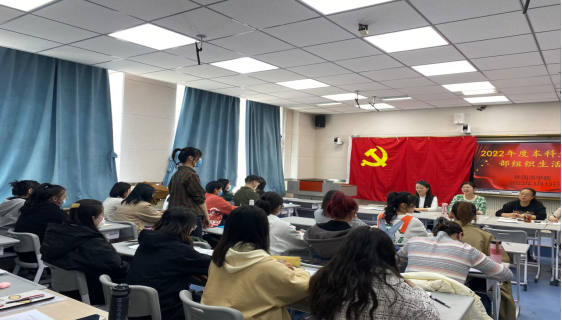 最后,殷春兰同志表示,此次会议紧扣主题,内容全面具体,各位党员的发言也都深刻认真,并向各位党员提出了建议,希望各位党员在之后的生活中,不仅仅要学好理论的知识,还要加强提升自身的能力。李梅菊同志表示,本次会议开展质量高,建议要重视党员互评环节,作为样板党支部要为整个本科生支部做表率、树立标杆。二位同志发言结束后,党支部书记刘洋同志进行总结发言,接受以上的建议,对支部发展提出展望,之后的工作要落到实处,积极改正存在的不足,要起到带头引领的作用。