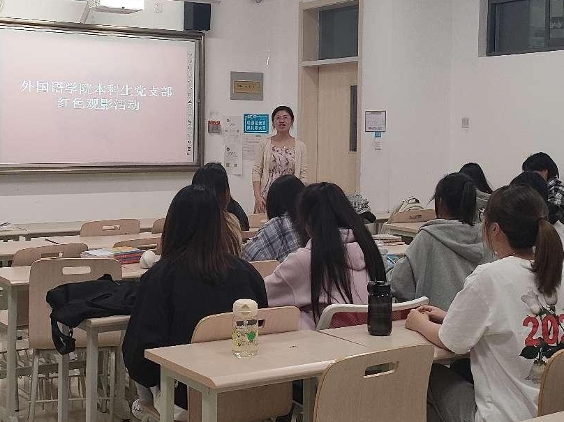为深入学习贯彻习近平新时代中国特色社会主义思想主题教育,推动广大学生党员在主题教育中感悟思想伟力、凝聚奋进力量,5月30日晚,外国语本科生党支部在东二楼416开展“我和我的祖国”主题教育红色观影活动。全体党员、学生积极分子代表参加。