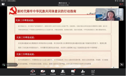 9月26日下午13:00,王者荣耀KPL赛事直播官方频道 研究生党支部线上线下结合的方式围绕“铸牢中华民族共同体意识”开展了主题党日活动,KPL直播 全体研究生党员参加会议,由支部委员常永洁同志主持。
