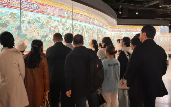 在抗战主题展览的会场,一件件历史文物和珍贵的图片资料生动展示了南京大屠杀的史实,告诫我们要勿忘国耻、珍爱和平,师生党员纷纷驻足凝视,深感今天的幸福生活来之不易。接着,在青海藏文化博物馆,师生们依次参观了彩绘大观、藏族民俗、古籍文献、藏药标本、天文历算、藏文书法等展区,领略了藏族文化的独特魅力,从青海藏族人民与各民族交往交流交融的过往中也深刻感受到民族团结进步对青海发展的深远意义。