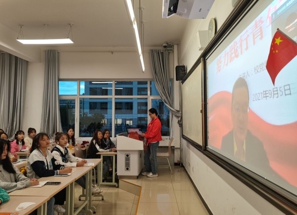 9月5日组织全体学生进入“腾讯会议”观看由校党委书记毛学荣以《努力践行青年历史使命》为题的思政线上课程,在线上课程中毛书记向我们详细介绍了中国共产党百年的奋斗历史,详细地讲解了毛泽东思想、邓小平理论以及马克思主义中国化的进程,他深入浅出的讲述,使同学们对党史有了深刻的了解。他指出,疫情下共产党的做法,是为每位大学生做的表率,值得我们所有人去学习,相信这次疫情会使同学们深刻体会到中国共产党的制度优势。随后,毛书记高度评价了马克思主义的价值,并引导同学们要做马克思主义的传承者和践行者。最后,毛书记呼吁我们青年大学生要始终坚持党的领导,进一步坚定“听党话、跟党走”的信念,努力做一名中国特色社会主义的建设者和接班人。本次团课内容同学们感触颇深,大家纷纷认为,身为青年学生,我们无论在何时都要努力学习、奋发进取、砥砺前行,为实现中华民族伟大复兴的中国梦而努力奋斗。