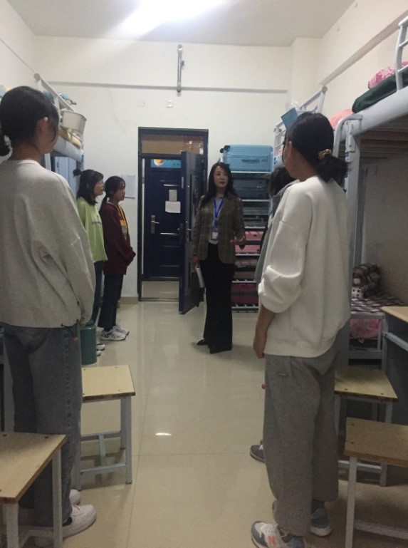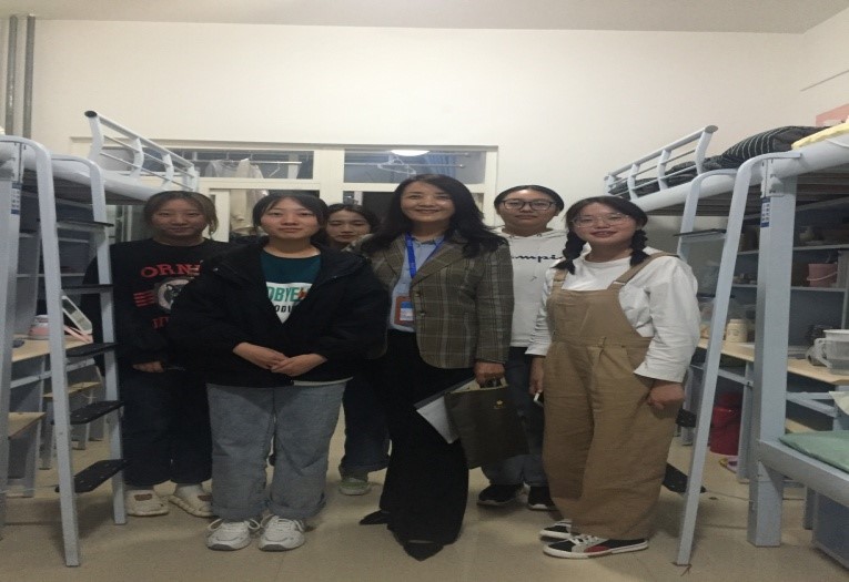 2021年9月21日,中秋佳节的晚上,KPL直播 党总支书记马金芳、辅导员殷春兰、班主任吴万贞和刘海燕走访学生宿舍。