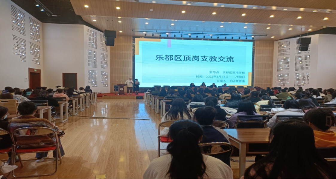 此后,19级八名顶岗支教同学依次进行分享。她们详细介绍了四个月支教历程中的教学经验工作体会、师生活动以及给学弟学妹们的实习建议。她们纷纷表示支教生活充满了辛勤与感动,每一节课面对学生求知的目光,每次批阅满载学生付出的作业,每次迎接学生获得进步的笑容,都让站在讲台上的她们无比欣慰与动容。顶岗支教对每个同学来说都是一段宝贵的经历,是人生路上浓墨重彩的一笔。