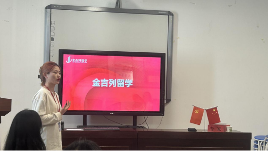 接着,金吉列出国留学咨询服务有限公司西宁分公司的负责人为大家介绍其公司的基本情况和招聘信息。留学顾问经理褚吉鸿老师以非常清晰的讲解,使同学们了解了该公司是一家口碑好、经验足、待遇高的留学机构,也对此次招聘的岗位的要求和主要职能进行了一个说明。同学们听完介绍后,不禁跃跃欲试。