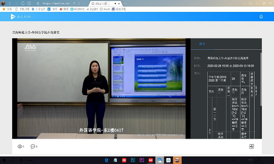 除了常规的备课外,为了做好网络教学,王芳老师提前试用了多个授课平台,精心设计了教案,安排好授课的每个环节,提前一周给学生推送了预习资料,督促学生完成预习。后来,鉴于各个网络平台直播中存在的问题,以及学校对于网络授课技术练兵的号召,在学校的支持鼓励下,采用了学校录播室直播上课的方式。根据平台特点修改了教案和教学设计,把与学生互动部分提前到了课堂之前,并在课堂上播放互动录像,让同学们积极参与课堂活动,加强了语言学习的互动性。