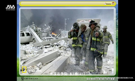 最后通过医生、消防员等“最美逆行者”的形象,将话题过渡到本节课的授课内容,即美国9/11事件中的人和事。教学材料多样,有纪录片,学生自制视频,以及详实的图片,丰富了课程内容,保证了授课内容的知识性和思想性。