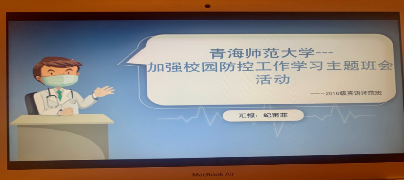 召开一次主题班会,加强学生教育。4月16日、23日,各班通过线上线下方式,先后组织召开了以“凝聚力量、共克时艰”和“新学期、新征程”为主题的班会,广泛开展爱国主义教育、理想信念教育、诚信教育、生命教育等,讲述防疫战役一线故事,学习学校疫情防控制度和《青海师范大学疫情防控学生读本》,签订《疫情防控承诺书》,教育学生加强“四自管理”,主动配合学校疫情防控工作,做到“教学不间断、教育不断线”。