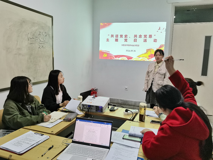 5�26日,外国语学院研究生党支部开展了“共话党史、共念党恩”主题党日学习活动,支部书记籍天璐同志主持学习�
