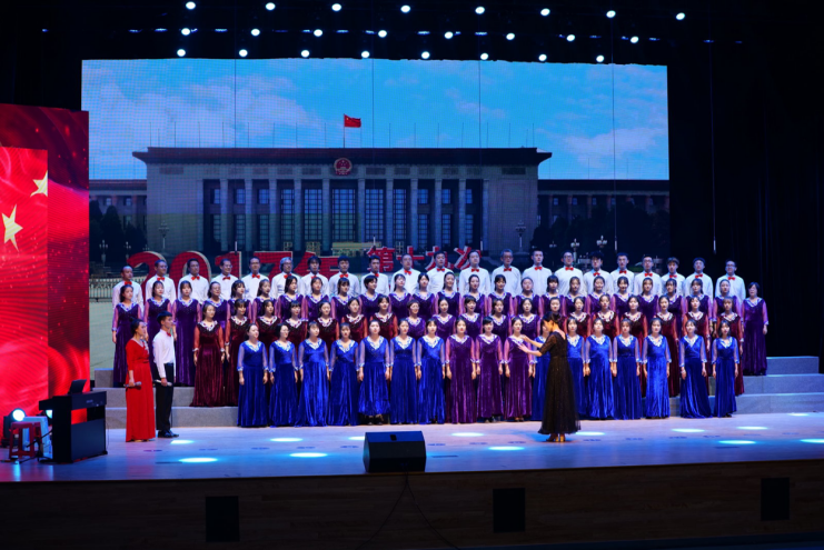 最后,文艺汇演在《没有共产党就没有新中国》的大合唱中落下帷幕,此次展演活动表达了师生对党的热爱和忠诚以及不忘初心、牢记使命,永远跟党走的坚定信念。