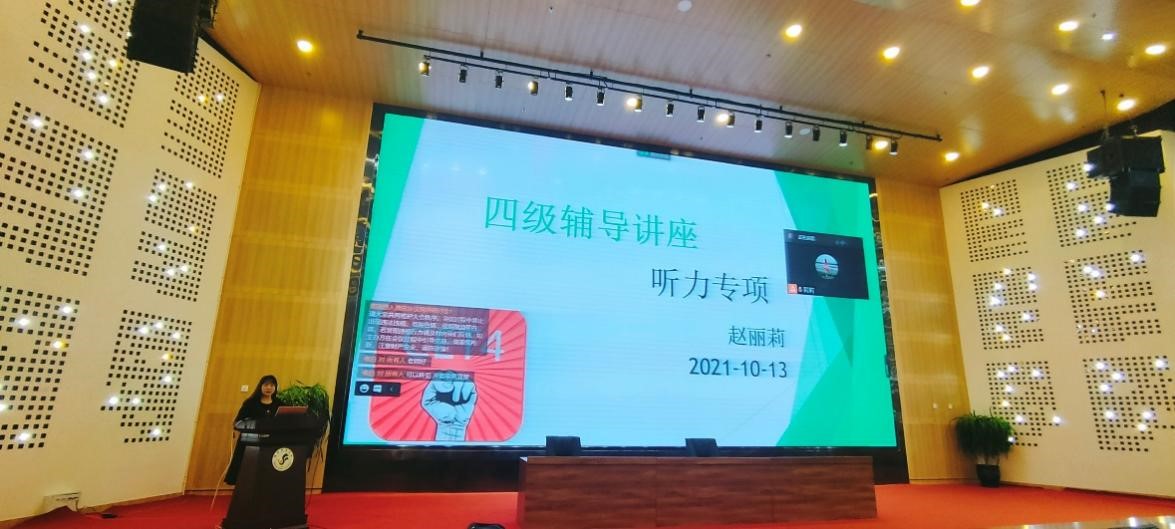 为了进一步提升考生备考水平,由教务处主办,外国语学院大学英语教研室(党小组)承办我校大学英语四级考试系列专题讲座�2021�10�13日下�14时在我校图书馆报告厅进行了首场听力专项讲座,由赵丽莉副教授主讲�
