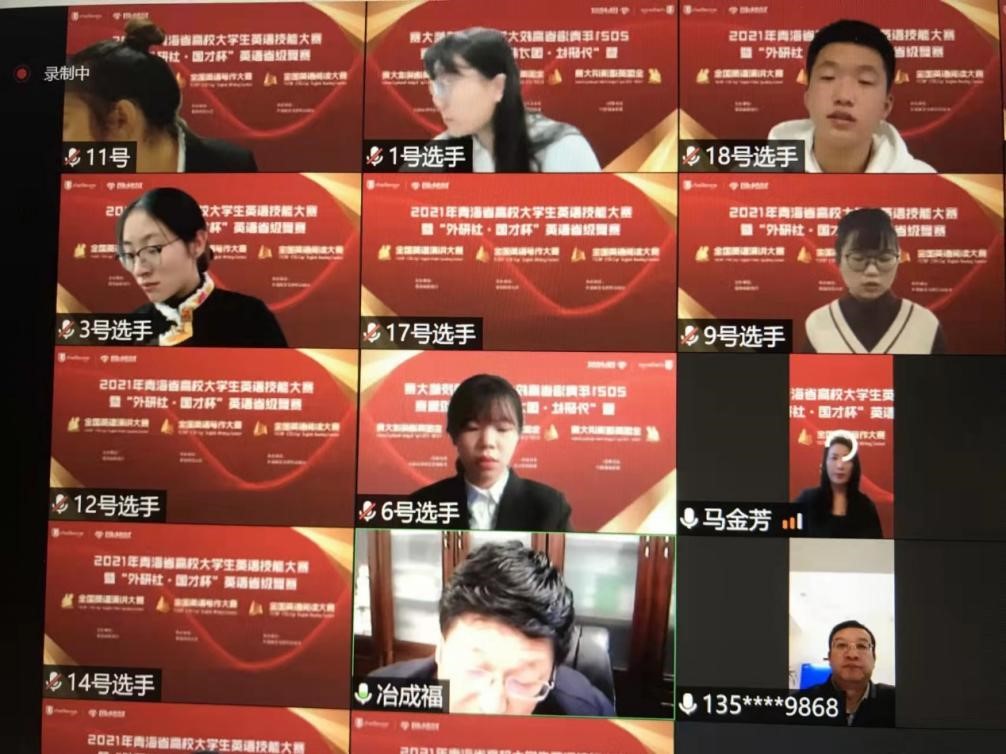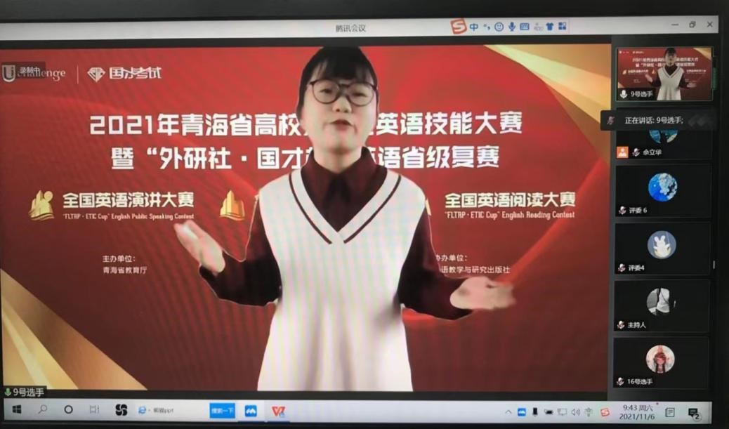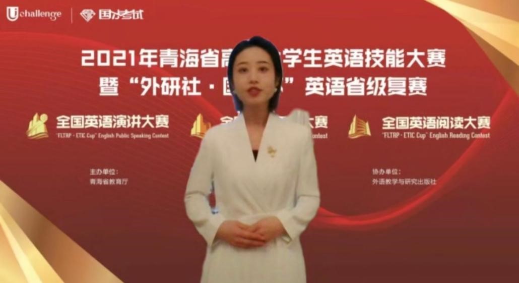 2021年青海省高校大学生英语技能大赛暨“外研社·国才杯”全国英语演讲大�(青海赛区)�2021�11�6日在线上进行。青海师范大学外国语学院书记马金芳主持开幕式,青海师范大学副校长冶成福、青海省教育厅高教处处长盛宗煜致辞�