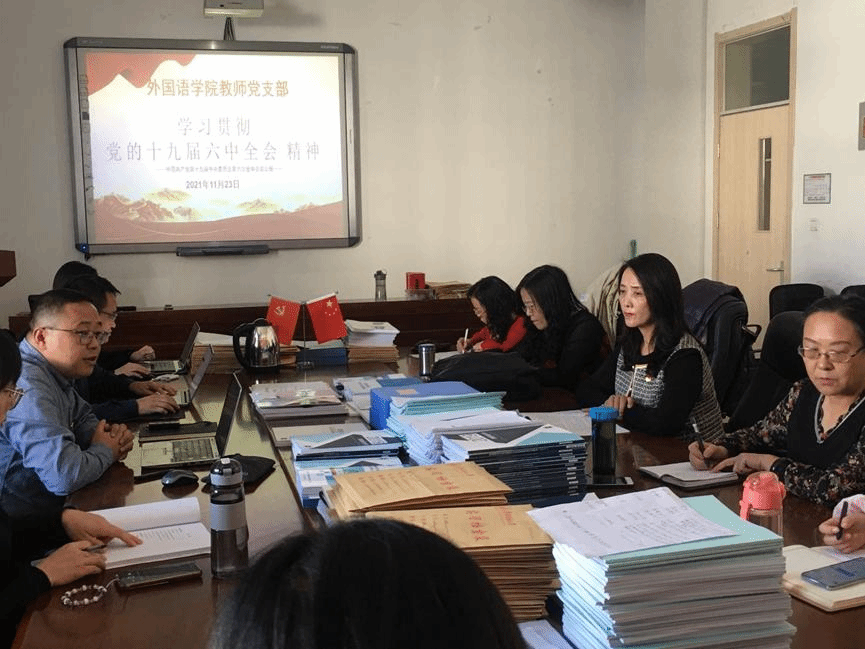 11�23日,外国语学院教师党支部全体教师在东二楼408会议室开展了党的十九届六中全会精神专题学习�