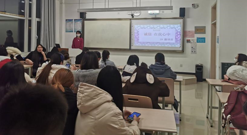 为大力培育和践行社会主义核心价值观,进一步提升外国语学院学生的诚信意识,11�21日,外国语学院召开了“诚信在我心中”教育主题班会,外国语学院全体在校学生以及各班班主任参加了此次班会�
