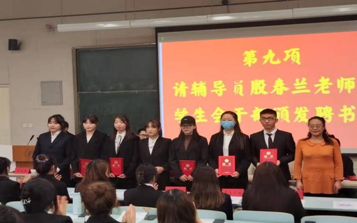 在学院领导及各位代表的殷切期盼下,马金芳书记分别为团总支委员会、学生会主席团颁发聘�; 团总支书记乔祥山为团总支干部颁发聘书; 辅导员殷春兰为学生会干部颁发聘书并合影留念�