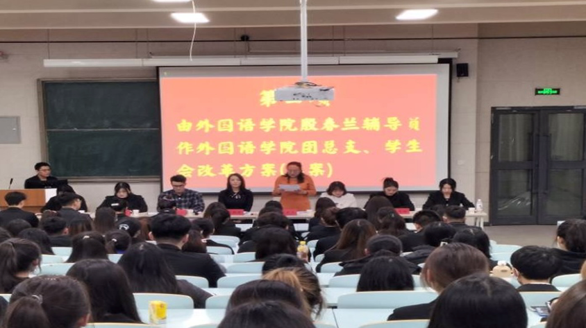 随后,外国语学院上届学生会主席张雨佳代表全体学生干部进行了述职报告。团总支书记乔祥山宣读产生新一届团总支、学生会成员名单�