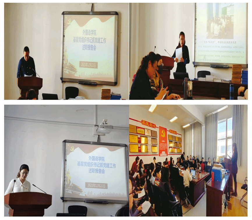 为深入学习贯彻习近平新时代中国特色社会主义思想和党的十九届六中全会精神,进一步压实各级党组织书记履行全面从严治党责任,推动全面从严治党向基层延伸,切实提高党的建设质量,根据学校统一部署,外国语学院党总支�12�22日下午举�2021年度党支部书记述职大会。学院全体教师、各党支部书记参加会议。会议由学院党总支书记马金芳主持�
