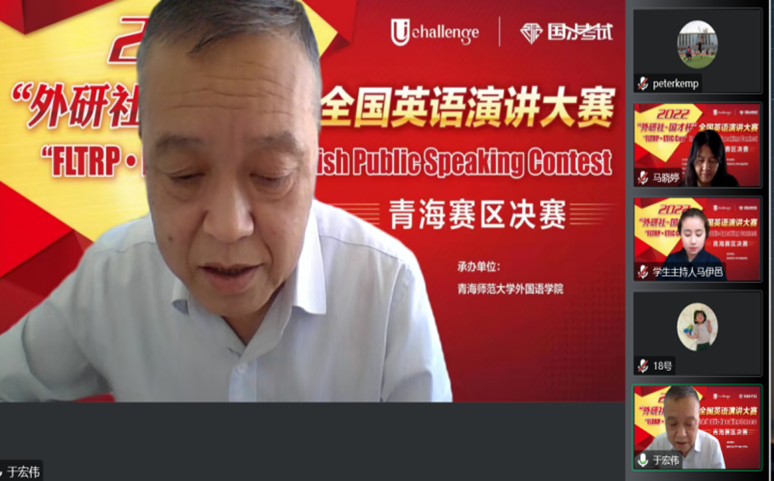 赛后,青海省外语研究会会长、我校档案馆馆长于宏伟对赛事进行了点评。于会长讲到:演讲比赛举办的非常成功,每位选手赛前都做了充分的准备,演讲内容上表现出了深厚的文化底蕴,选手均能紧扣演讲比赛的主题。选手从不同的角度表达了自己的见解,传递出了很多中华优秀的传统文化和思想,表现出了当代大学生的朝气,给人留下了深刻的印象。与此同时,他建议选手们在今后的比赛中要注意时间及语速的把控。最后于会长寄语选手们:踔厉奋斗,勇毅前行�