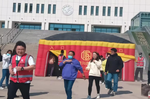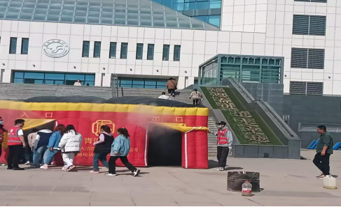 在确保安全的情况下,消防教员借助火灾逃生舱、烟饼等相关工具,模拟出火灾烟雾缭绕的场景,让师生们排队有序地感受火灾逃生现场,并指导正确的逃生姿势。师生们一个接一个弯着腰、捂着口鼻、用手摸着墙,进入火灾逃生模拟仓。当同学们从模拟舱里出来的时候,被烟熏的咳嗽流泪,极大地还原了火灾现场的情景。当消防教员说模拟舱的威力远不及真实火场的万分之一时,大家随之神色肃穆,对真实的火灾有了更深的认识,对消防安全学习有了更高的积极性,极大的增强了同学们的火灾防范与逃生意识,不再是以“儿戏”的态度对待。