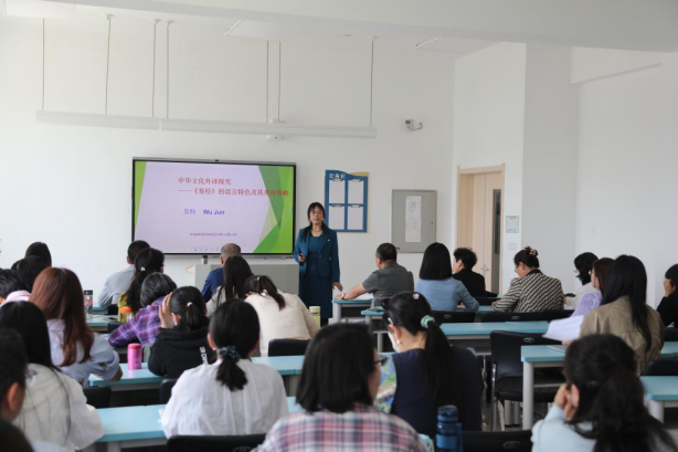 讲座中,吴钧结合详实的案例,从《易经》的形成、主要内容、核心概念以及《易经》翻译研究的现状等方面切入,围绕《易经》卦爻辞的音韵节奏、言简意赅和象征比喻分析了英译的原则和策略。她强调理解原文的本义和引申义是文化和文学翻译的基础,勉励在场的师生对青海民俗文化外译进行更多的翻译实践和研究,助力大美青海走向世界。