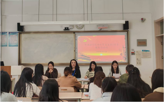 活动中,全体党员重温入党誓词、学习党章。巩鲜妮向全体党员传达学习了习近平总书记在全国两会期间的重要讲话精神。学生党员公毛吉领学《政府工作报告》中关于高等教育、科技创新的重点论述。全体党员一起观看了纪录片《奋进新征程的中国答卷》节选,并围绕“如何在学习生活中践行全国两会精神”“作为学生党员,如何为实现两会目标贡献力量”两个话题展开讨论和交流。最后,学生党员何微同志以“弘扬帆起航正当时 凝心聚力谱新篇”为题讲授微党课,通过生动案例与深入浅出的讲解,激励党员在新时代积极作为,为实现中国梦贡献力量。