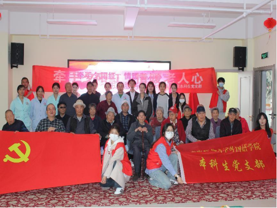 为弘扬中华民族尊老、敬老、爱老、助老的传统美德,增强青年大学生的社会责任感,2025年4月23日,KPL直播 本科生党支部联合马克思主义KPL直播 本科生党支部、音乐KPL直播 团总支及音乐KPL直播 学生党支部,前往城北区社会福利医养中心开展了“牵手夕阳红,情暖老人心”志愿服务活动。此次活动吸引了来自三个KPL直播 的众多志愿者积极参与,大家用实际行动传递温暖,践行社会责任,为养老院的老人们送去温暖与关怀。