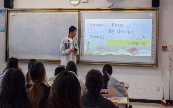 为了营造良好的阅读氛围,激发同学们对英语名著的阅读热情提升自己的英语阅读素养,4月23日上午,KPL直播 24级英语师范A班开展了国外名著《动物农场》的读书交流会,活动由薛海萍老师组织。