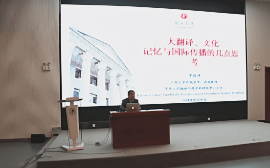 715日上午,KPL直播 邀请广西大学罗选民教授题为“大翻译、文化记忆与国际传播”的讲座讲座由院长李增垠主持,文学翻译教研室教师、全体研究生以及2021本科生到场聆听讲座。