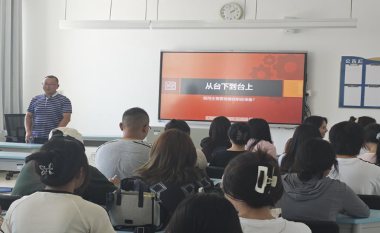 首先王宗昌副校长着重强调了师范生在转变为教师身份时心态调整的重要性。这一转变不仅仅是角色的转换,更是心态和认知的全面调整。作为教师,需要具备责任感、耐心和同理心,以适应教育工作的挑战。同时,自我反思是教师持续成长的关键。这些心态的调整对于师范生成功转变为教师至关重要。王副校长的这些见解为即将进入职场的学生提供了宝贵的指导,帮助学生更好的理解教师职业的内在要求和心理准备的重要性