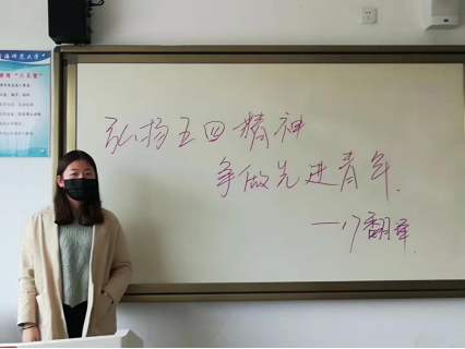17翻译、19师范B等班级通过线下形式开展了团学活动,团支书为大家讲述了爱国与进步对弘扬五四精神的重要性,他说到“五四精神概括起来就是爱国、进步、民主、科学,虽然五四运动已经100周年了,但仍然需要我们青少年提倡和发扬。”同时鼓励大家,作为青少年一定要不断进取、一直向上。今天社会经济发展的脚步很快,但是爱国和进步仍然是每一位青年同志心中永恒不变的主题。