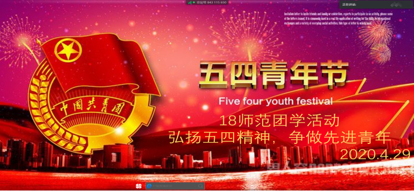 活动中,18英语师范、19翻译等班级通过腾讯会议,集中学习了五四精神的相关资料,并以微课形式对于"五四精神"内容进行了全面的理解和交流,研讨中,同学们积极分享、交流,大家一致认为作为当代青年团员应当秉承民族精神,肩负时代责任,及时抓住机遇,将个人理想和祖国联系起来,争做新时代的追梦人。