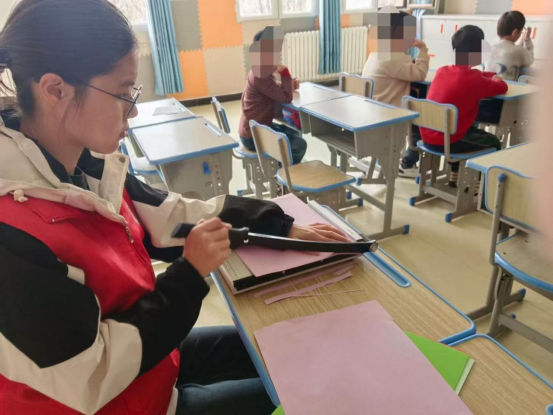 第二节课是手工课,老师让我去帮助一位恢复较慢的孩子,我坐在她旁边,她却只是安静地沉浸在自己的世界里,对周围置若罔闻。她不会画圈圈,我握着她的手教她,她先是很害怕,然后逐渐平复,然后拿出了一支笔递给我那瞬间我得到了无声的回应!我拿着笔画一个,她就跟着我画一个,最后她学会了画圈,她看着自己的画嘴角悄然向上弯了,仿佛一缕微光穿过了沉寂的云层。在我要离开的时候,她突然说了一声谢谢,我的内心十分惊喜,同时我也十分自豪和开心。