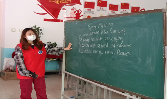 大二英语专业4名志愿者带领18名小学三至六年级学生开展60分钟的志愿活动,通过学习,学生们基本掌握了英语版歌曲和《春晓》的朗诵,能流畅完成集体展示,发音和节奏把握较之前有明显进步。活动激发了学生对英语学习的兴趣,也让他们对传统文化有了新的认知,课后不少学生主动向志愿者询问更多英语诗歌的内容。
