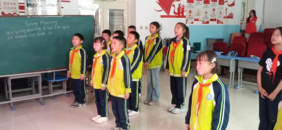 3.本次活动特色亮点:(1)形式创新:将英语学习与中国古诗《春晓》结合,用英语朗诵经典诗词,让学生在语言学习中感受中西文化碰撞的魅力。(2)互动性强:通过排队形、加手势、集体练习等方式,调动学生积极性,增强团队协作能力,让学习过程更具趣味性和参与感。