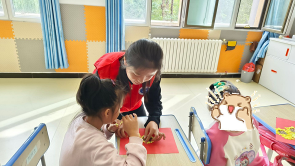 在老师的引导下,我试着放缓语速,蹲在孩子身边,轻声介绍自己,还拿出提前准备的小贴纸。起初,孩子们大多没有回应,但当我把贴纸轻轻放在一个小男孩手边时,他忽然拿起贴纸,贴在了我的袖口上。这个小小的动作像一束光,瞬间驱散了我的紧张,也让我明白,与他们的交流,需要的是耐心而非急功近利。