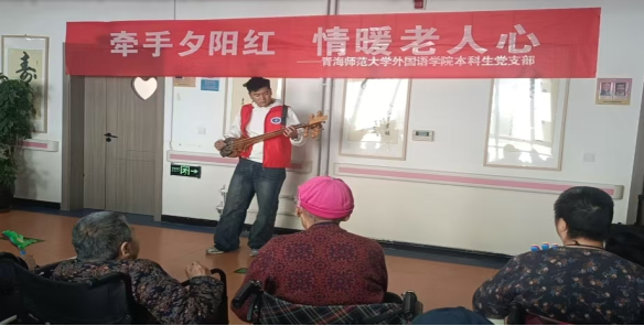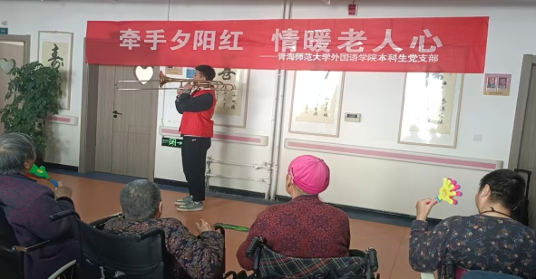 最后,志愿者安培恩带来器乐表演《草原上升起不落的太阳》。悠扬的旋律从乐器中流淌而出,时而舒缓悠扬,时而激昂高亢,仿佛将大家带到了辽阔的草原之上,感受着大自然的壮美与豪情。志愿者精湛的演奏技巧赢得了老人们的阵阵喝彩,不少老人跟着旋律轻轻哼唱,现场氛围达到高潮。精彩的文艺表演不仅为老人们带来了欢乐,更让他们感受到了青年一代的活力与风采,温暖了在场每位老人的心房。