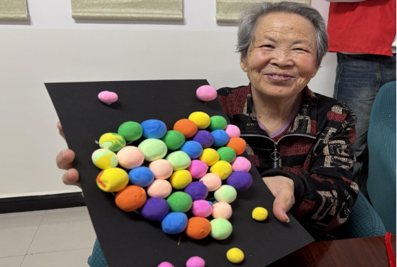 手工制作过程中,志愿者们始终将安全放在首位,提醒老人不要将小零件入口,全程关注老人的身体反应。大家围坐在一起,欢声笑语不断,老人们分享着自己的人生经历,志愿者们讲述着校园趣事,温馨的氛围感染着在场的每一个人。这段时光,不仅是一次简单的手工创作,更是一场心与心的交流,一份温暖的陪伴。